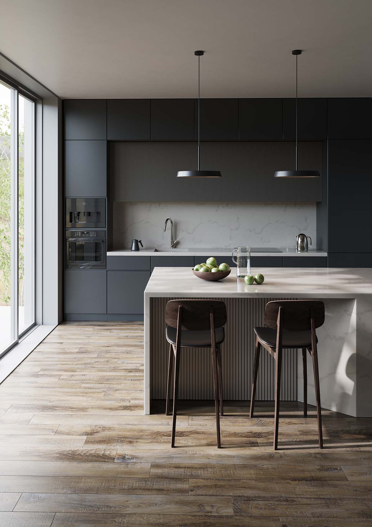 Можно использовать интерьер в нейтральных оттенках, чтобы снизить градус, или поддержать градиент в деталях: текстиле, панно, декоре.